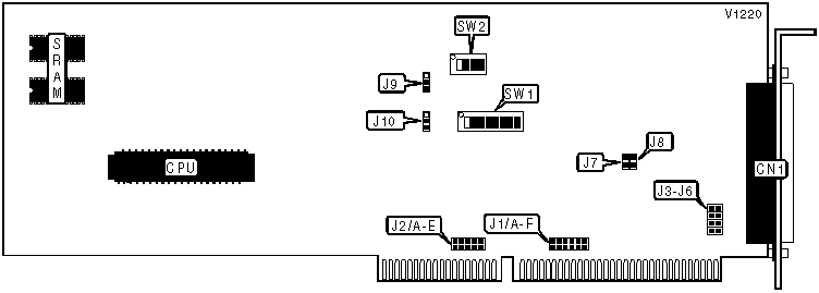 Note: A total of 255 base address settings are available. The jumpers are a binary representation of the decimal memory addresses. Switch SW1/1 is the Most Significant Bit and switch SW1/8 is the Least Significant Bit. The switches have the following decimal values: switch SW1/1=512, SW1/2=256, SW1/3=128, SW1/4=64, SW1/5=32, SW1/6=16, SW1/7=8, SW1/8=4. Turn off the switches and add the values of the switches that are off to obtain the correct memory address. (Off=1, On=0) | |||||||||