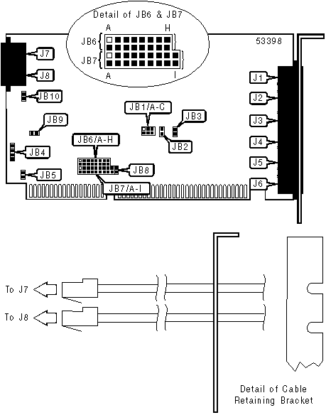 Note: JB8 is used to cascade card to another Blackboard 8/650 via jumper cable.
