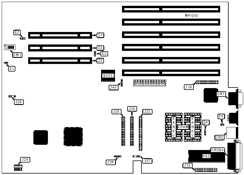 32-bit external CPU/Memory module slot, 32-bit external Memory module slot (2), bus mouse port, floppy drive interface, IDE interface, parallel port, serial port (2), SVGA port |