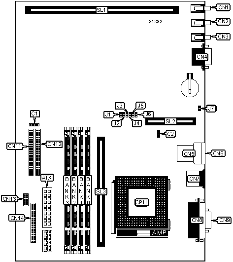 Note: Board accepts EDO memory. Largest size DIMM must be installed in Bank 0 with decreasing sizes in Banks 1 - 3. | ||||