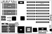 Auxiliary bus slots (6), CPU slot, floppy drive interface, IDE interface, parallel port, PS/2 mouse port, serial ports (2)